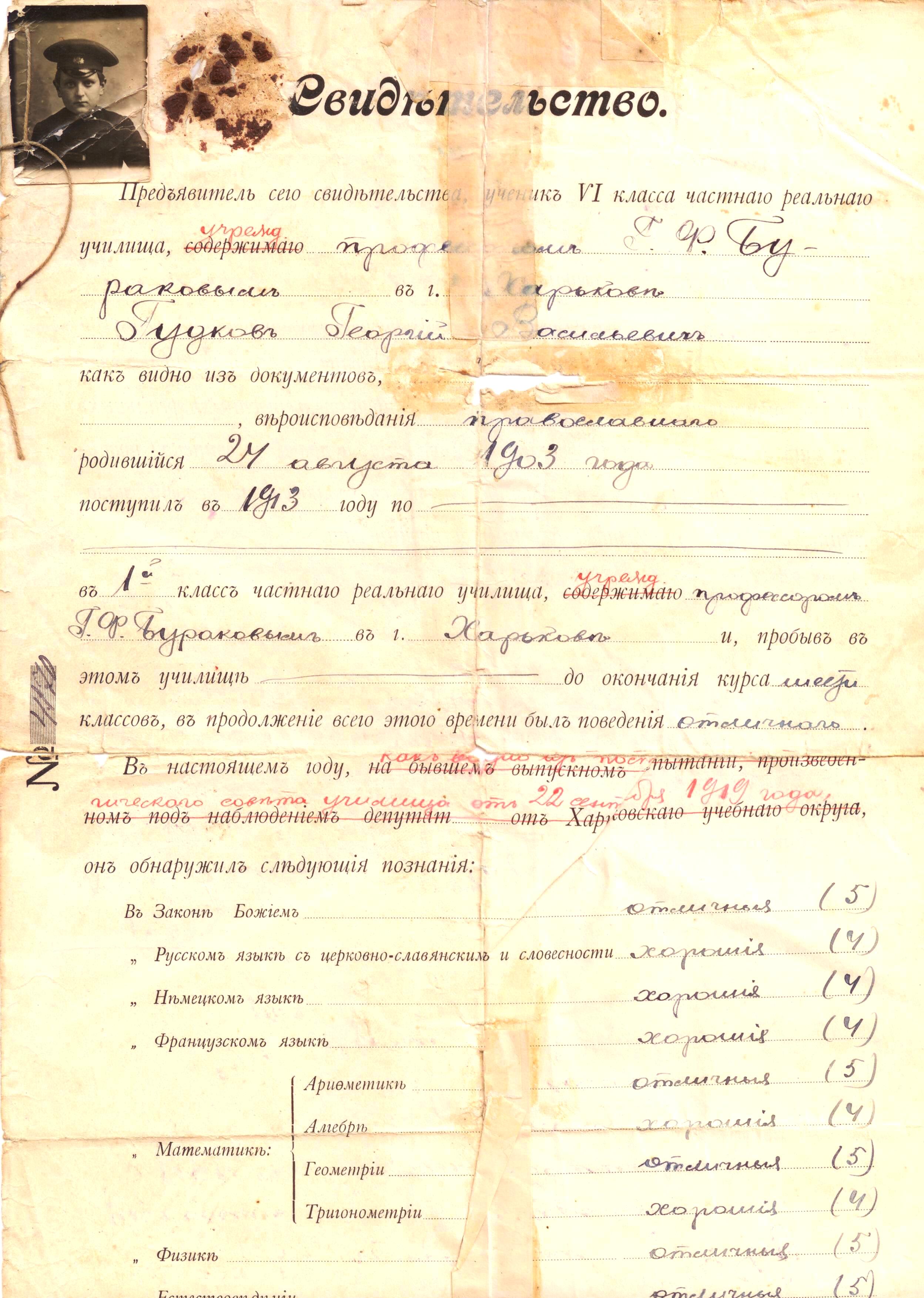 Георгий Васильевич Гудков, 1912 год