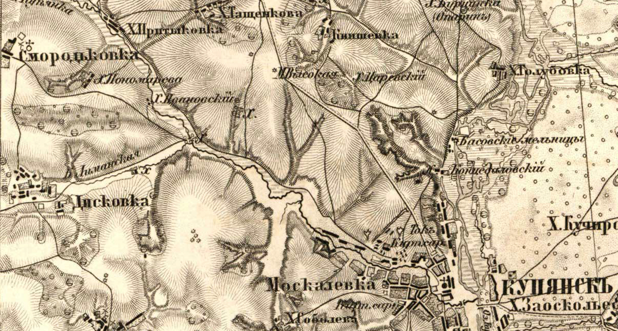 На 1785 год владения кадета Фёдора Ивановича Диского, дом господский деревянный, при нём сад, водяная мельница на два постава, действике весной и в дождливое время, доход собирается хлебом до 40 четвертей. Через дачу проходила большая дорога Белгород - Изюм. В этой усадьбе неоднократно бывал Григорий Савич Сковорода. 50 дворов, 196 мужчин, 189 женщин. Земли 1981 десятина 405 саженей.
