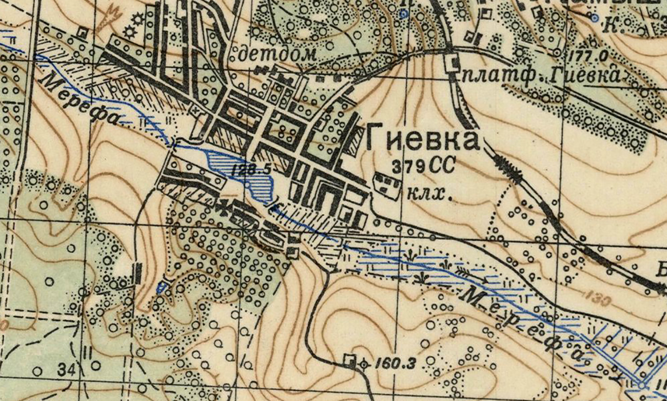 В 1804 году в деревне Гиевка была деревянная Николаевская церковь, господский деревянный дом Ионы Познанского. На речке Мерефа водяная мельница о четырех поставах. При сей мельнице винокуренный завод о пяти котлах, за зиму на нём выкуривается до 2000 ведер горячего вина. Ещё одна мельница располагалась на речке Московке об одном поставе. На этой речке ещё два винокуренных завода, и на протоке Вязовом три винокуренных завода в коих 15 котлов - все отдаются в наем по 200 рублей с каждой, а выкуривается до 4500 ведер горячего вина. Пахатной земли 2400 десятин. Крепостные Познанского изготавливают на продажу деревянные бочки и кадки.