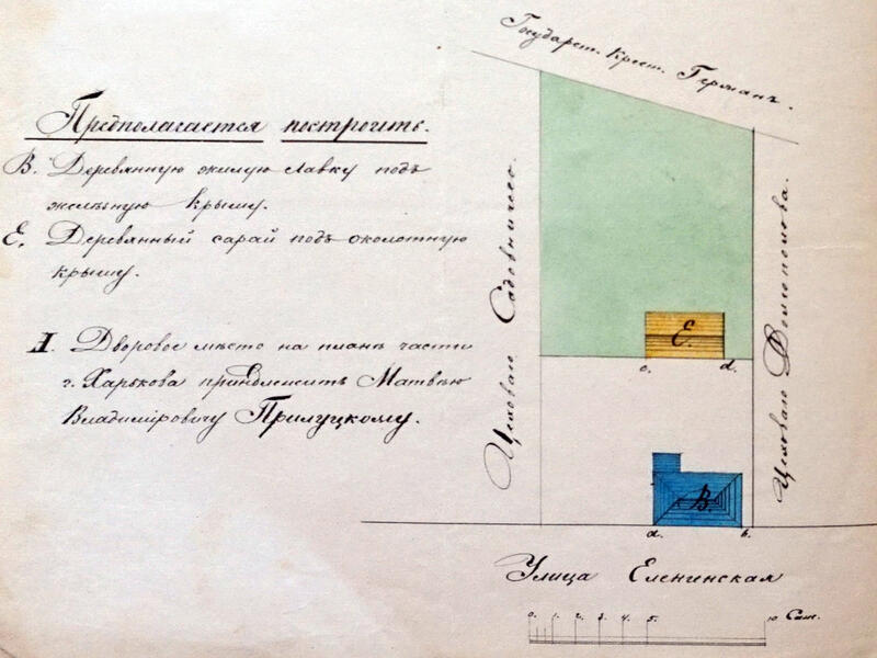 У 1872 році мерщик у відставці Матвій Володимирович Прилуцький вирішив побудувати лавку на власному дворовому місці в передмісті Рубанівка по Оленінській вулиці. Лавка дерев'яна під залізним дахом, і таковий же саоай. Проєкт складав Олександр Подьяков.
