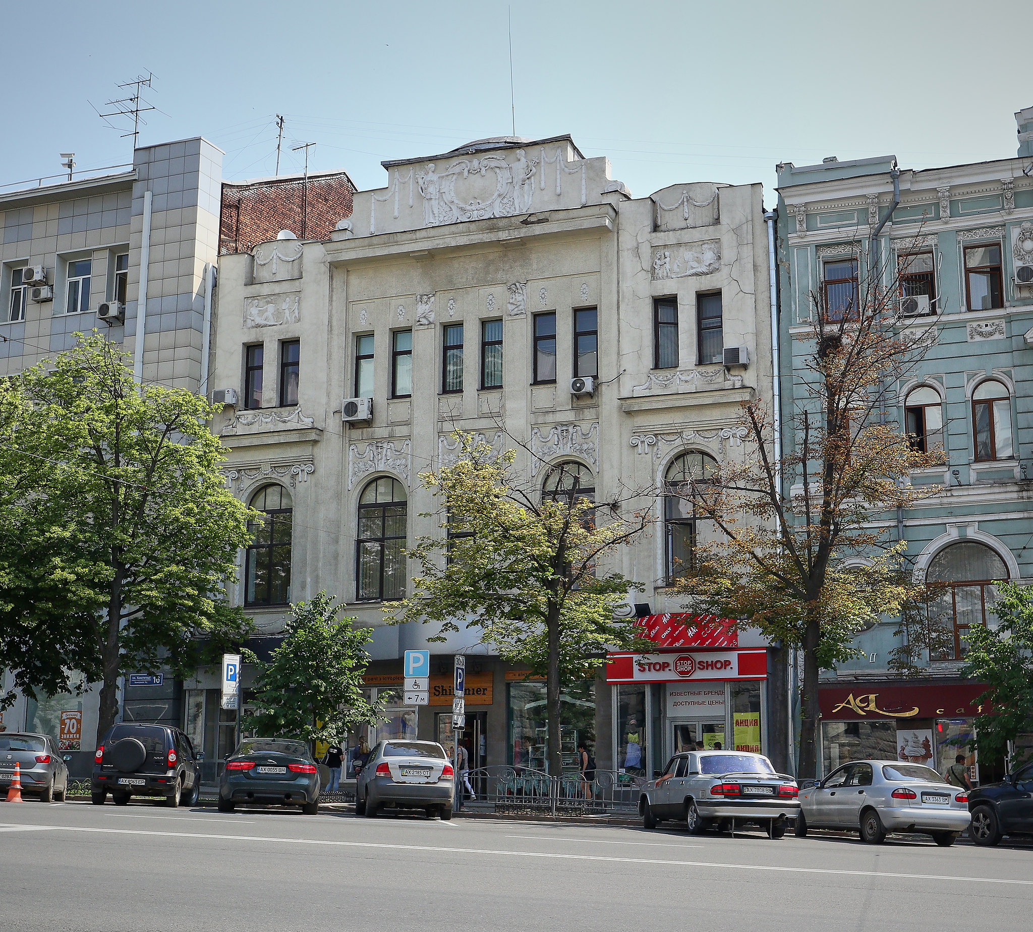 Уже в 1910 году Азовско-Донской банк ощутил нехватку помещений для отделения в Харькове, поэтому тут же, на Николаевской площади № 18, начали строительство нового здания по проекту архитектора Льва Корнильевича Тервена в 1913-1914 годы. А после переезда в новый офис дом по Николаевской площади № 14 перестроили в 1915 году по проекту того же Тервена. К счастью, до наших дней дошла фотография, сделанная до его перестройки фотографом Алексеем Иваницким, которая ярко показывает подходы к оформлению фасадов двух разных архитекторов.