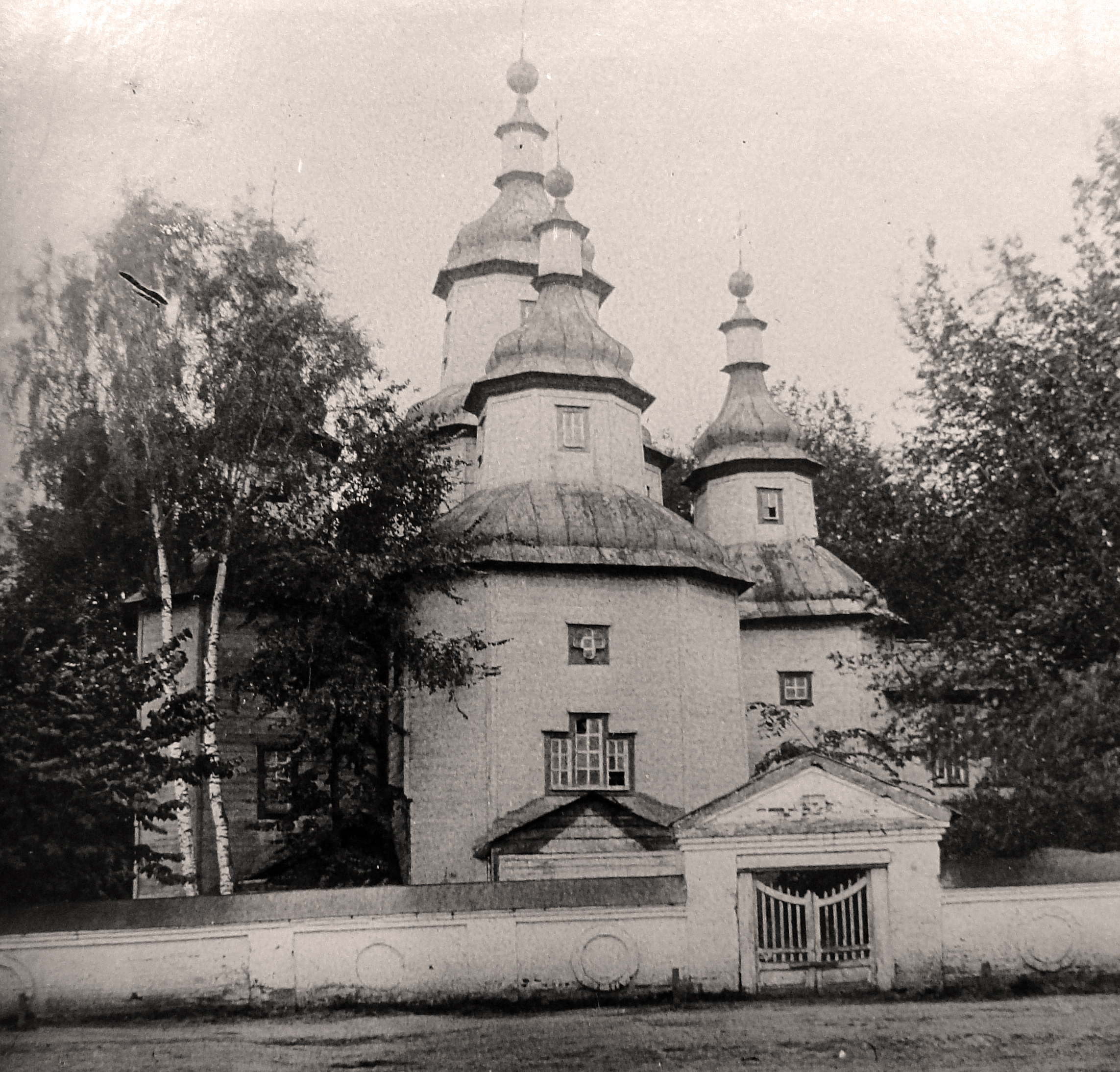 Стримано стрункі зруби стін рукавів всі однієї висоти. Енергійно засклепленими гранями залому об’єм рукава переходив у світловий, теж стримано стрункий восьмерик. Площа плану восьмерика бабинця складала (наблизно) ¼ площі плану дільниці. Стрімкий другий залом завершується зовні струнким глухим ліхтарем. Всередині, можливо після ремонтів, восьмерик перекрито плоскою стелею, що відрізала і закрила другий залом. Восьмерики бабинця і вівтаря в плані – більші, південного і північного рукавів – менші. Висота верху кожного рукав зовні дорівнює на вигляд висоті зрубу стін.